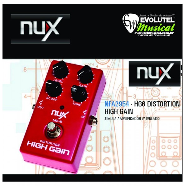 - 3 Estágios de ganho, circuito discreto. FET simula a distorção característica do amplificador tubo