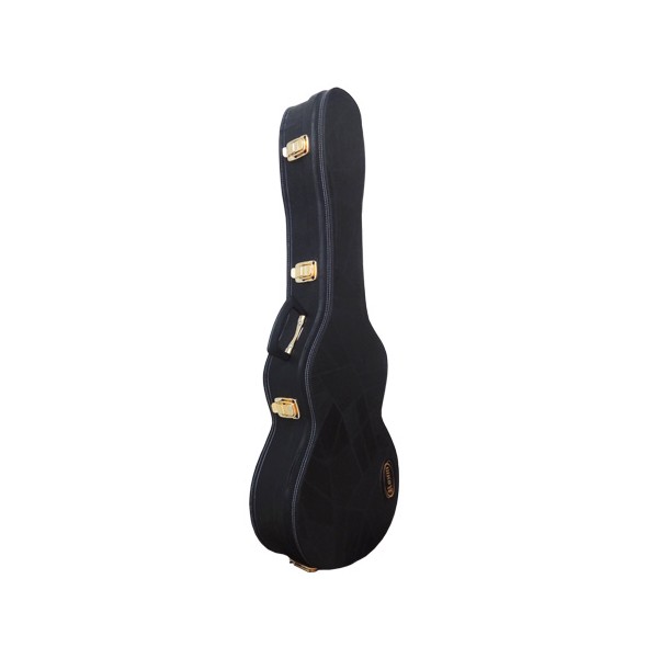 Revestimento externo em couro sintético preto e interno em pelucia, com compartimento para cabos e palhetas.