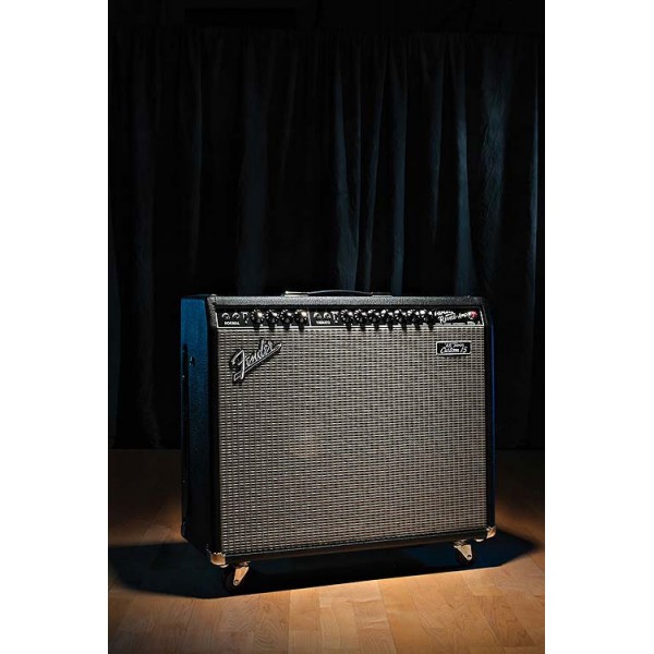 vibrato); circuito totalmente a válvula c/ 4 x 6L6 (power) + 4 x 12AX7 (pre) e 2 x 12AT7 (reverb e vibrato); reverb de mola, suporte para inclinação da unidade; painel Fender "cara preta"; footswitch de dois botões; acabamento em tolex preto.