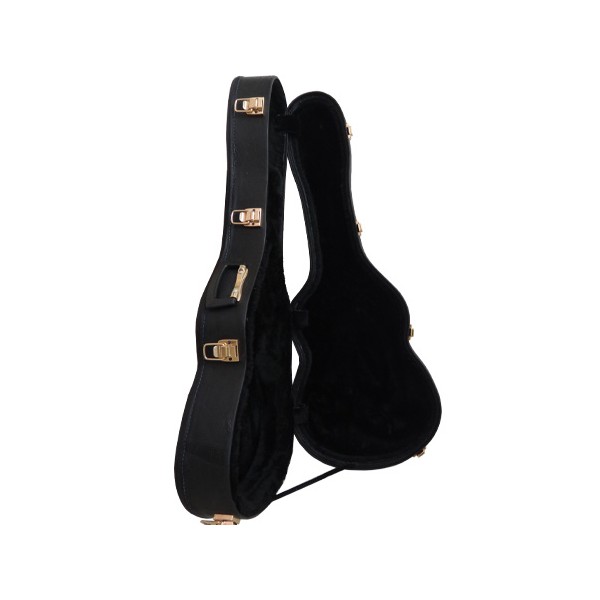 Revestimento externo em couro sintético preto e interno em pelucia, com compartimento para cabos e palhetas.