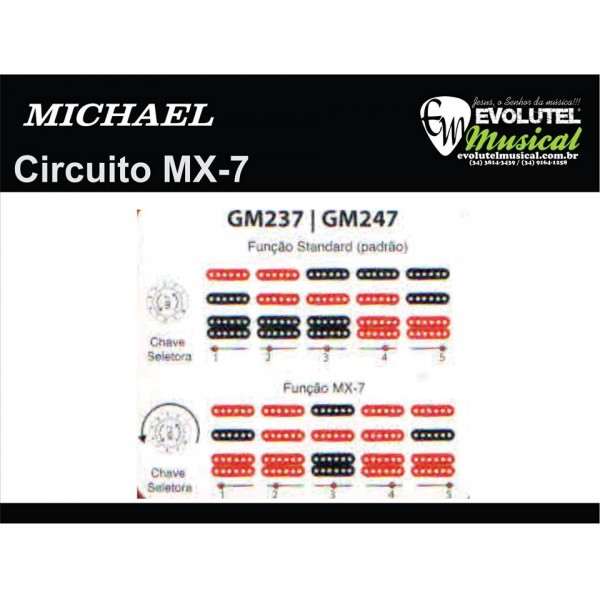 Esta guitarra Stratocaster possui 2 captadores Single Coil (braço e corpo)e 1 Humbucker (Ponte) que proporciona um sinal versátil.No circuito MX-7, criado com exclusividade pelos especialistas Michael, estes captadores são combinados de maneiras diferentes possibilitando até 7 de timbres diferentes.