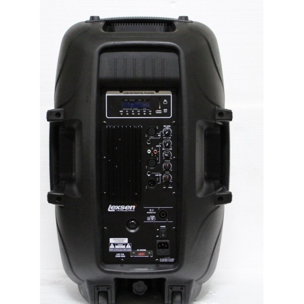 A LSX-15A é uma caixa ativa com equalizador de 2 bandas que auxilia na equalização, e conector Speakon para alimentação de uma Caixa Passiva. Possui entradas XLR e P10 (TR), entrada de linha XLR e RCA, saída de linha XLR e P10 (TR) e entrada USB e SD Card. A Caixa dispõe das funções MP3 Player, conta com um display de LCD, Receptor de sinal FM, Função de Bluetooth para Transferência e Reprodução em RealTime de arquivos em MP3, Controle Remoto que possibilita o controle de Músicas e Volume a distância, entradas em USB e SD Card que permitem a maior flexibilidade e compatibilidade de Arquivos de Áudio.Com 220 Watts RMS de potência, que proporcionam uma ótima dispersão sonora, suas rodinhas facilitam o transporte, além de de ser leve e compacta, conta com um design moderno.