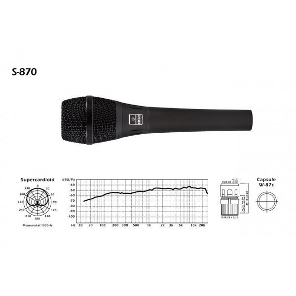 Por ser profissional, o S-870 mantém o padrão TRUE SUPERCARDIOID ao longo de sua extensa faixa de frequências. Isto assegura um alto ganho antes de qualquer realimentação de microfonia (ou seja, é anti-feedback = anti-microfonia).