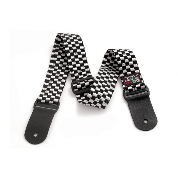 Cor: Quadriculada preto e branco. A correia colors CNQ é confeccionada em poliéster com 5cm de largura e ponteiras duplas.