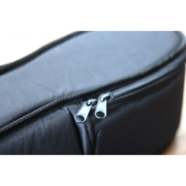 Intertelada de E.V.A nas laterais e papelão 40 no corpo para maior proteção do instrumento.