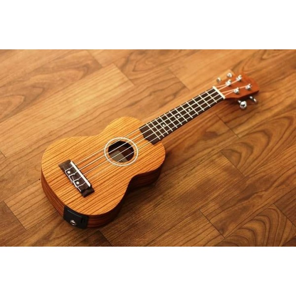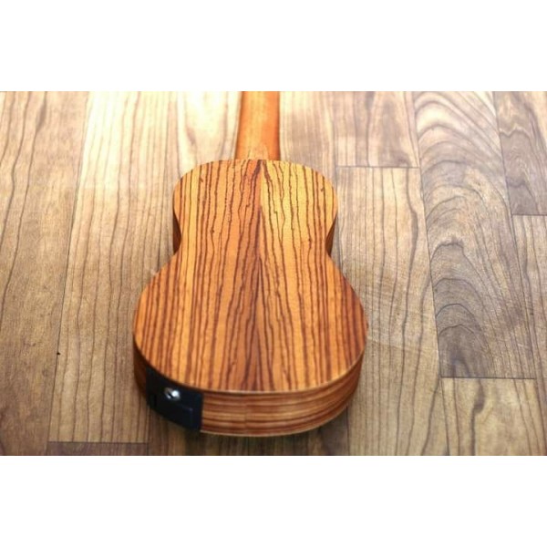 O Ukulele Elétrico Soprano Michael MK21 ZBE vem com tampo, laterais e fundo em Zebra Wood, além de cavalete e escala em Blackwood, madeiras de qualidade que proporcionam boa projeção sonora e brilho aos agudos.
