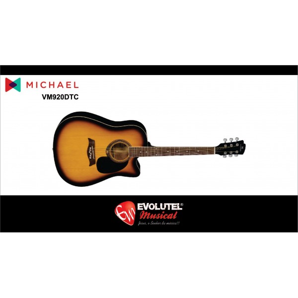 O violão Michael VM920DTC Sunburst Satin (SS) é um instrumento de timbre equilibrado, com ótima projeção sonora e acabamento de qualidade, pronto para garantir musicalidade aos violonistas avançados.