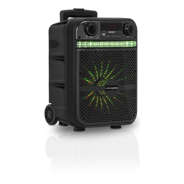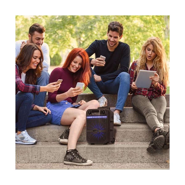 Além da conexão Bluetooth que permite a reprodução de músicas diretamente do smartphone ou tablet, conta também com entrada auxiliar, entrada USB para pen drive, entrada para cartão micro SD, sintonia de Rádio FM.