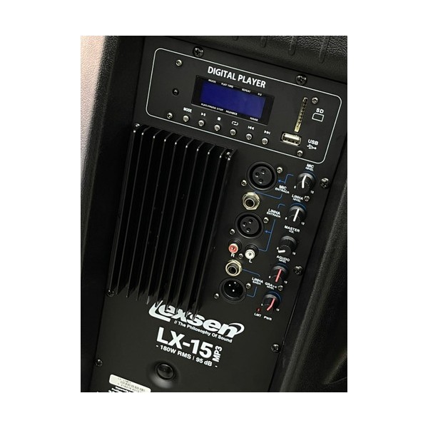 O modelo LX-15 MP3 conta com amplificação Classe AB. Esta caixa de som conta com MP3 player, Display LCD, Bluetooth e USB/SD. É bi amplificada e vem com controle remoto para facilitar na utilização, além de ser leve e compacta, de fácil transporte e instalação.