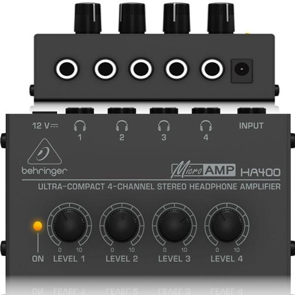 O HA400 é um amplificador para fones de ouvido da Behringer que pode ser utilizado com praticamente todos os tipos de fones de ouvido, e até 4 fones ao mesmo tempo, sendo possível determinar o nível de volume em cada um deles, utilizando os dedicados controles LEVEL de nível de saída. Possui 4 amplificadores estéreos que mantém a qualidade sonora mesmo ajustado para o nível máximo de volume. Um amplificador operacional de baixíssimo ruído está incluso para garantir o alto desempenho em qualidade de som estéreo, este é o mesmo amplificador operacional utilizado nos melhores equipamentos de áudio.