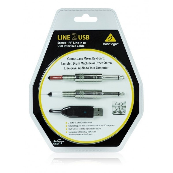 O Line 2 USB da Behringer é um cabo com 2m de extensão, com conector USB de um lado e P10 do outro. Agora ficou muito mais fácil gravar sua arte. O cabo de interface USB LINE 2 conecta instrumentos diretamente ao seu computador, tornando assim tudo mais simples. Em uma extremidade do cabo você conecta seu instrumento e a outra, diretamente no computador. E para tornar tudo ainda melhor, o cabo tem 2 metros de extensão, suficiente para manter tudo conectado sem o excesso de fios espalhados e com liberdade de movimentos.