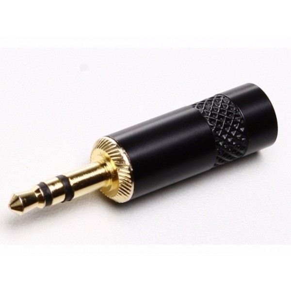 Descrição do Produto: Plug P2 estéreo em latão banhado a ouro e capa preta.
