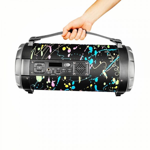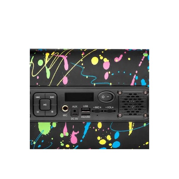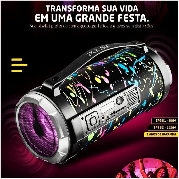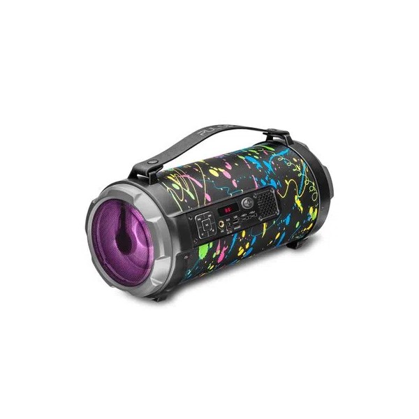 Paint Blast, desenvolvido para te oferecer maior potência, são 120W de potência em 2 alto-falantes (Tweeter 1.4 polegadas + Subwoofer 4 polegadas) que trazem alta fidelidade ao som. Seus LEDS decorativos nos radiadores passivos deixam sua Paint Blast preparada para animar ainda mais a sua festa! Possui bateria recarregável de 1.800 mAh, com autonomia de até 8 horas, para você aproveitar ao máximo a sua festa, e além disso você pode acompanhar o status da energia através do painel de controle.