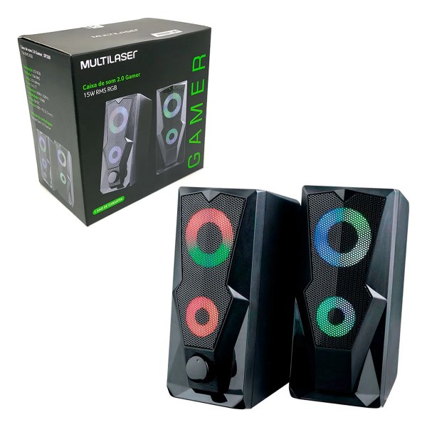 Caixa de som de 15W RMS 2.0 Stereo.