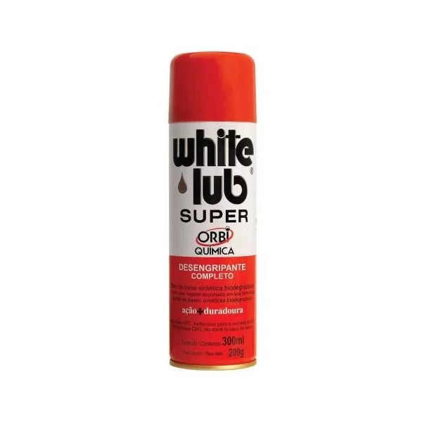 WHITE LUB SUPER, produto líder de mercado em seu segmento, possui uma formulação especial tendo como base o éster etílico que lhe atribui propriedades únicas. Após a aplicação cria uma película protetora sobre as superfícies, protegendo contra ferrugem e oxidação. Seu poder de aderência cria uma barreira perfeita contra a umidade. A ação penetrante foi especialmente elaborada para o produto desengripar com muita facilidade porcas e parafusos, reduzindo tempo, esforço e custo nas manutenções de máquinas e equipamentos em geral. Desengripante com alto poder penetrante de rápida ação. Age como antioxidante eliminando a água da superfície. Forma um filme aderente, diminuindo o atrito e o desgaste entre as peças.