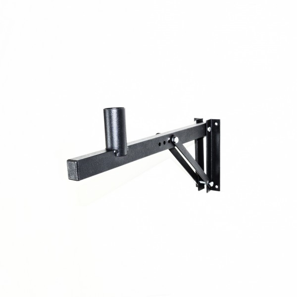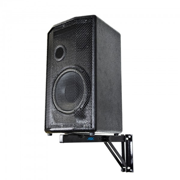Suporte para caixa de som com 4 regulagens de inclinação vertical (0º, 10º, 20º e 30º), permite rotação da caixa.