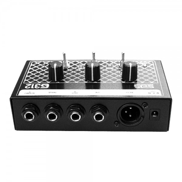Além das 3 simulações, o GS312 possui uma entrada auxiliar e uma saída balanceada que possibilita o músico ligar seu instrumento direto na mesa de som ou em uma caixa ativa.