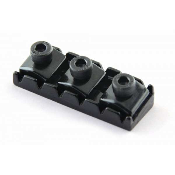 Capotraste (Lock nut) confeccionado em metal. Próprio para guitarras com sistema de microafinação. Acompanha chave sextavada para travamento.