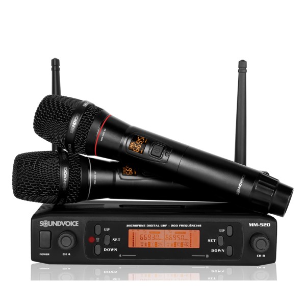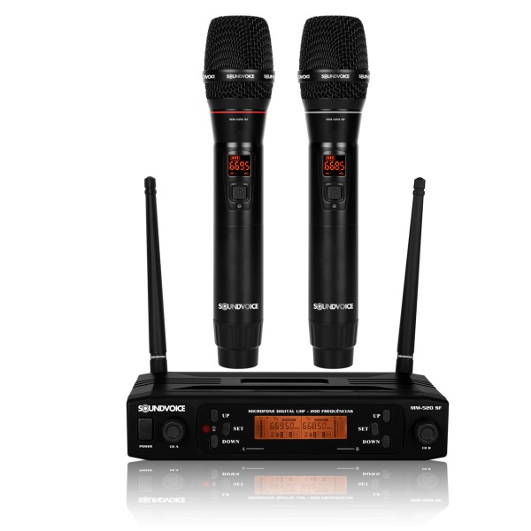 - Função de frequência de varredura automática para busca de frequências disponíveis.