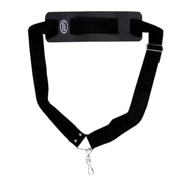 O talabarte 1 gancho é prático e ótimo para posicionar o instrumento mais para a lateral do que para o centro do corpo