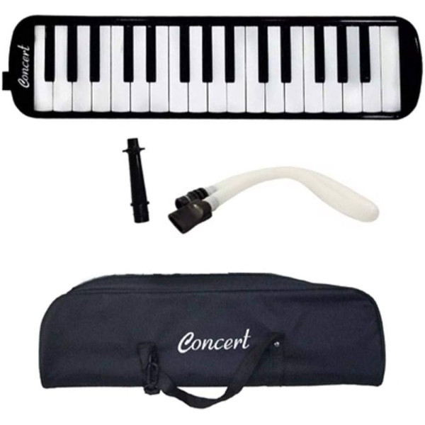 Feita em ABS, a escaleta Concert M32 tem alcance de F(fá) a C(dó) e afinação em C(dó). Possui um bocal para utilização direto no instrumento e extensor (cano). Acompanha bag.