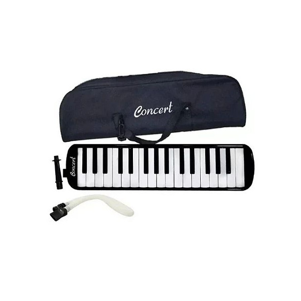 Feita em ABS, a escaleta Concert M37 tem alcance de três oitavas (a partir da nota F(fá)). Possui bocal para utilização direto no instrumento e extensor (cano). Acompanha bag.