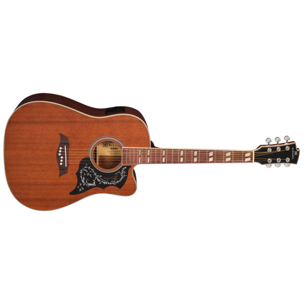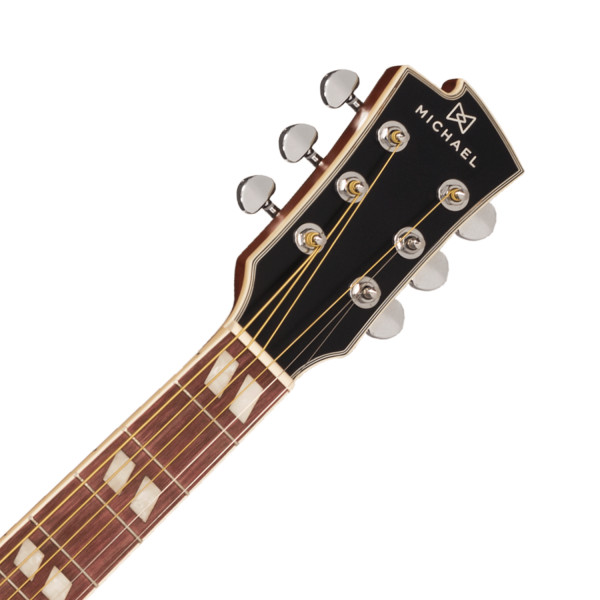 O violão elétrico Michael Galaxy VM925DTC, de cordas em aço, combina alto padrão sonoro e beleza! É um folk cutaway construído com madeiras nobres (Spruce e/ou Mahogany) e que se destaca também pelo lindo visual, com detalhes refinados, como o escudo flower, os marcadores de escala em madrepérola, os filetes múltiplos ABS e as opções de cores foscas e brilhantes. Oferece ainda equalizador de 4 bandas (com afinador), saída XLR/P10 e captação Piezo! Compre o VM925DTC e mostre toda sua personalidade musical O Michael VM925DTC é composto com madeiras diferenciadas, com destaque para as opções de tampos em Spruce ou Mahogany, que já vêm com tratamento especial para dar mais projeção e equilíbrio ao timbre. O violão Galaxy Michael possui tensor Dual Action, recurso que regula a curvatura do braço, deixando-o retilíneo, garantindo uma pegada precisa e confortável. É um violão de visual arrebatador! Detalhes como os filetes ABS, o escudo do tipo "Flower Decorado”, o cavalete e headstock com design exclusivo da Michael e os marcadores de escala em madrepérola realçam muito sua beleza. O VM925DTC possui captação Piezo, que garante fidelidade sonora quando plugado! Vem com saída XLR/P10 balanceada, além de equalizador Michael, de 4 bandas, para ajuste preciso do timbre. Seu afinador cromático possui função mute para ajustes discretos. O violão elétrico VM925DTC é modelo folk cutaway, ou seja, possui corte no corpo que facilita o acesso às notas mais agudas, trazendo mais conforto e precisão aos seus solos! É instrumento musical com sonoridade encorpada e incrível projeção! Feito na medida para violonistas exigentes, é um dos preferidos de quem curte sertanejo, rock, blues, country, e soulmusic. Irá atendê-lo nos palcos, ensaios e outras ocasiões.