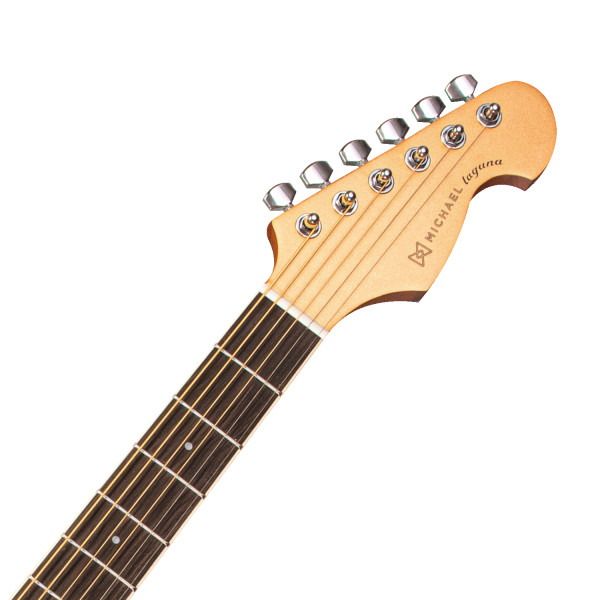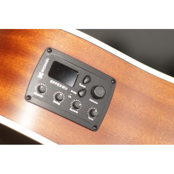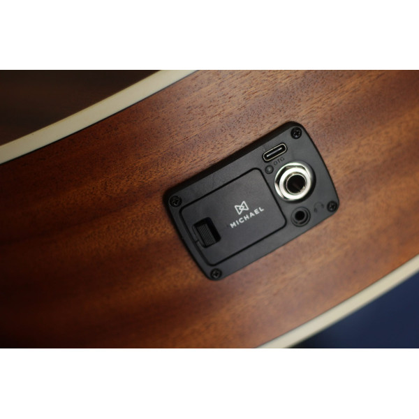 Os violões Michael Laguna são construídos com madeiras nobres: tampo em Spruce que traz um timbre bastante vivo, com ataque e clareza nos seus médios e agudos.