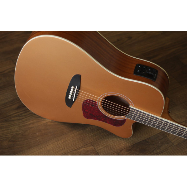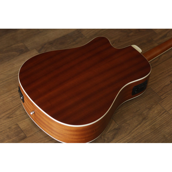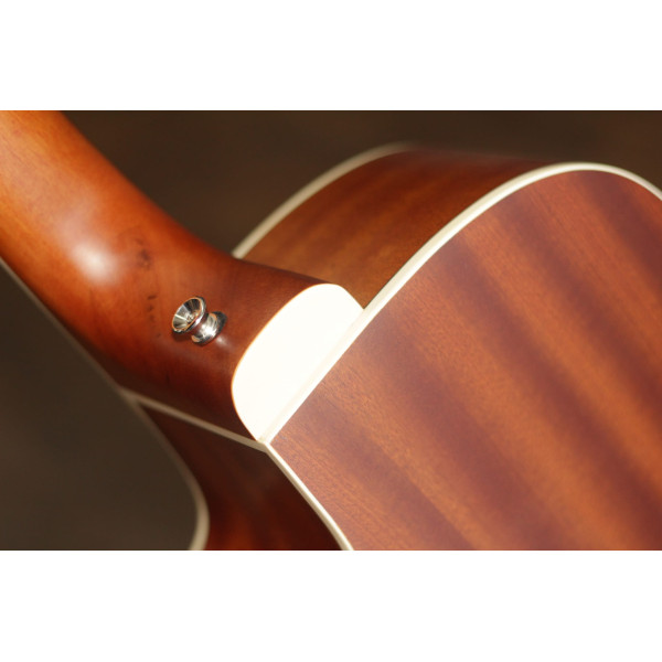 As laterais e fundo em Mahogany que permite um grave e encorpado, com bastante puch e sustain. Essa combinação de madeiras garantem uma excelente projeção sonora, com graves robustos e agudos harmônicos na medida certa. Possui braço em Nato, escala em Technical Wood e cavalete em Purple Heart.