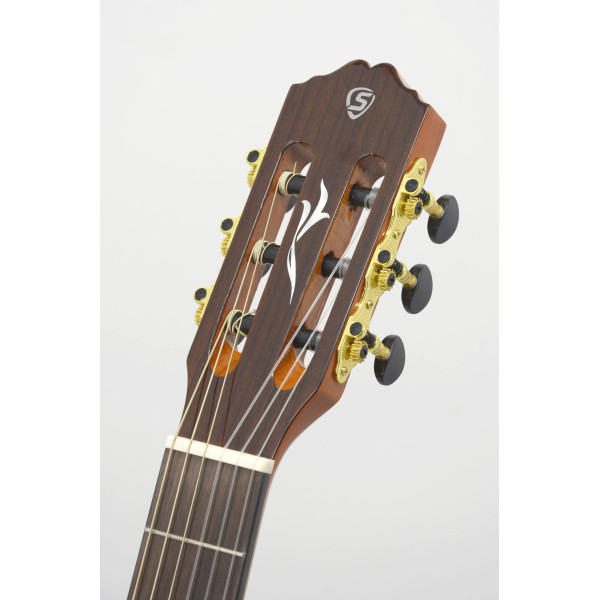 Modelo Clássico de acabamento requintado e excelente timbre. São utilizadas madeiras nobres em sua construção, tais como Rosewood e Cedro. Equipado com o pré-amplificador SE-60, com diversos recursos disponíveis.