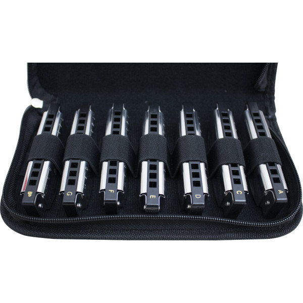 7 Gaitas nas afinações: A (Lá), B (Si), C(Dó), D (Ré), E (Mi), F (Fá), G (Sol)