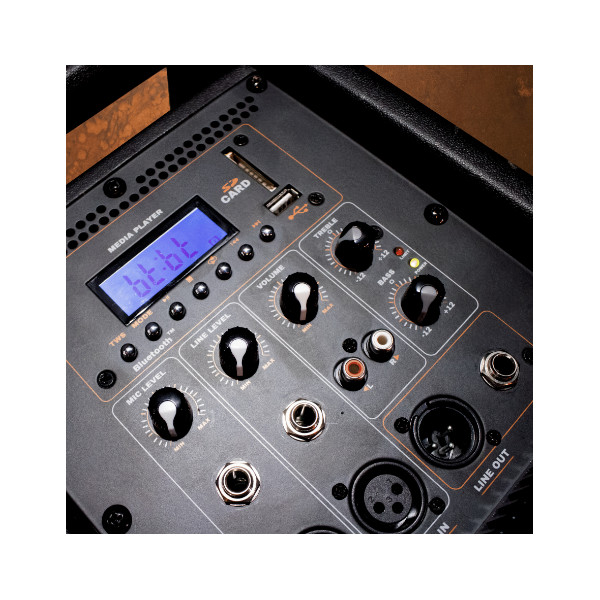 - Funcionalidades: USB com MP3 player, Cartão de memória, Rádio FM e Conexão Bluetooth com função TWS (True Wireless Stereo)