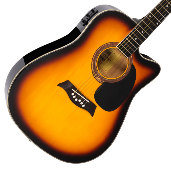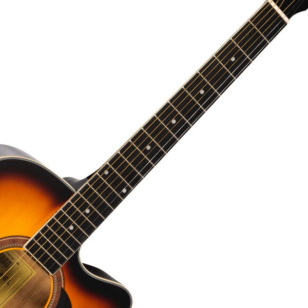 O Michael VMF361 é um violão elétrico folk, com cutaway, marcado pelo conforto e equilíbrio sonoro! Oferece construção robusta e belo acabamento, com destaque para as opções de cores brilhantes, o escudo gota Dropstyle, além do cavalete e headstock com design único! Vem também com equalizador de 3 bandas (com afinador), tensor Dual-Action, saída P10 e captação Piezo. Compre o VMF361, a escolha certa para todas as ocasiões. O violão VMF361 vem com tensor "Dual-Action", recurso que permite ajustar o braço nos 2 sentidos, proporcionando um alinhamento preciso da escala. O violão folk cutaway VMF361 possui visual impactante, com destaque para o headstock e o cavalete com design exclusivo Michael e também para o escudo tipo gota Dropstyle, que dá mais autenticidade ao instrumento É um violão folk construído com Linden, no tampo, laterais e fundo, e Walnut Wood, na escala e cavalete, madeiras tratadas especialmente para proporcionar um timbre mais definido e equilibrado Este violão elétrico vem com captação Piezo, que garante fidelidade sonora quando plugado! Possui também equalizador Michael, de 3 bandas, que traz afinador cromático embutido, além de saída P10, com boa estabilidade de sinal! O violão VMF361 é um modelo folk cutaway, ou seja, possui corte abaulado no corpo que facilita o acesso às notas mais agudas, trazendo mais precisão e confortabilidade aos seus solos! Sua versatilidade garante uma experiência musical diferenciada em todos estilos (sertanejo, rock, blues, country, e soul music, etc..). Irá atendê-lo nos estudos, ensaios, pequenas apresentações e outras ocasiões!