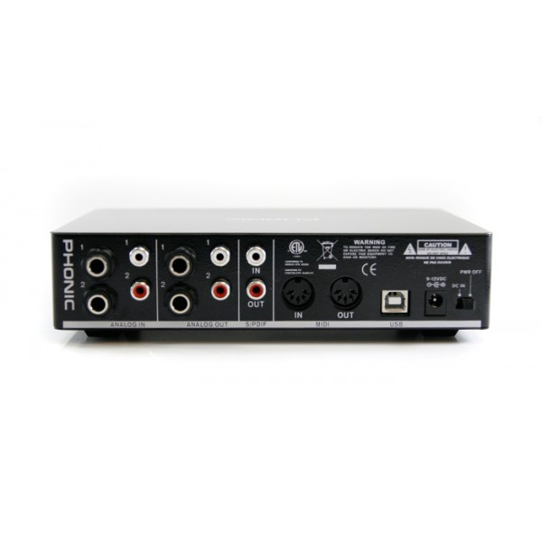 Apresenta 3 entradas (XLR, 1/4" e RCA) analógicas e 2 saídas analógicas, que são transmitidas para e do computador em tempo real através da conexão USB 24bit/192Khz.